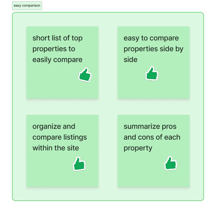 To prepare for the design process, I conducted a card sort to learn what information is most important to users when they're searching for a new place and would need to be added to the comparison feature.