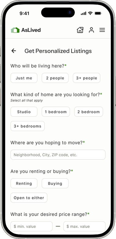 Users can take an intake quiz to get personalized listings that match their lifestyle. Users can also see how well listings match their search criteria.