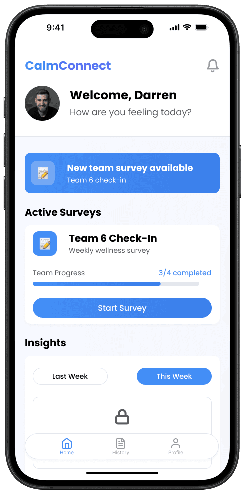 The shift to remote work during the COVID-19 pandemic made it harder for teams to recognize stress and emotional fatigue early on. CalmConnect encourages proactive wellbeing conversations by helping teams visualize how they're doing and identify areas that need support.