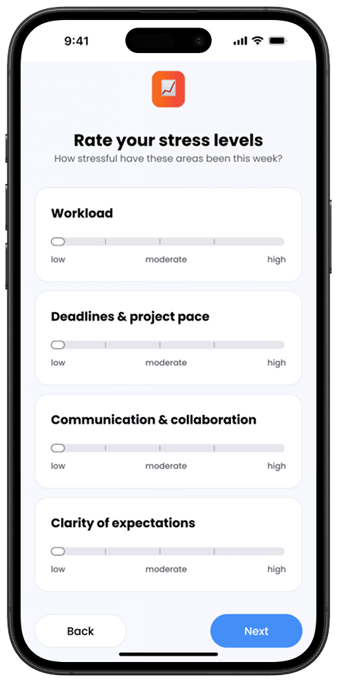 Quick well-being surveys to capture employees' stress levels, moods, and workloads.