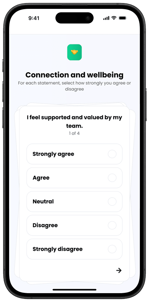 A mobile app where employees complete quick, anonymous wellbeing surveys.